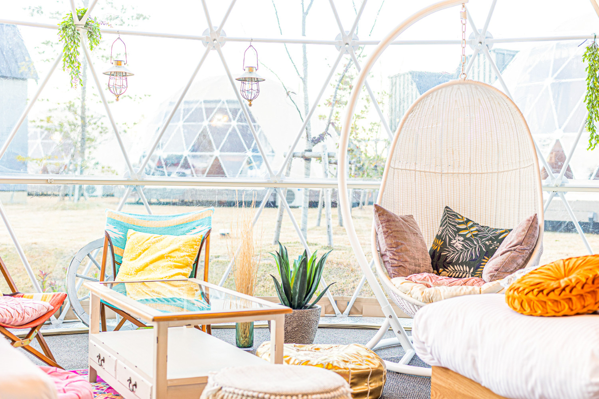 自然豊かな丘陵地で非日常体験。全棟独立型、プライベートを重視したグランピングヴィレッジ。